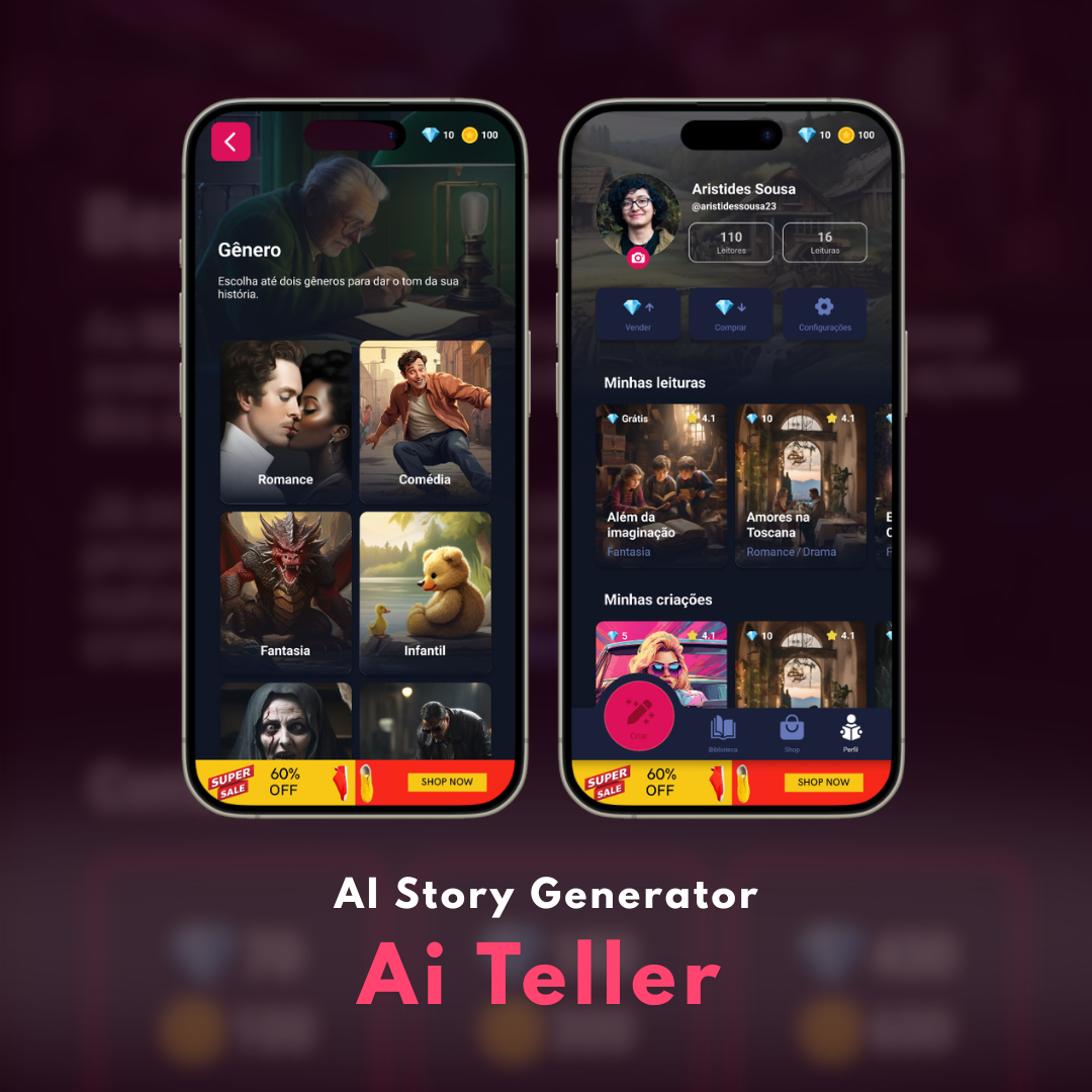 AI Teller é um aplicativo de criação de histórias interativas com inteligência artificial. Com uma interface leve e intuitiva, o usuário escreve um tema ou prompt e recebe narrativas completas geradas por IA, com variações criativas e possibilidades de personalização. Um projeto focado em entretenimento, educação e estímulo à imaginação, feito 100% no Bubble.