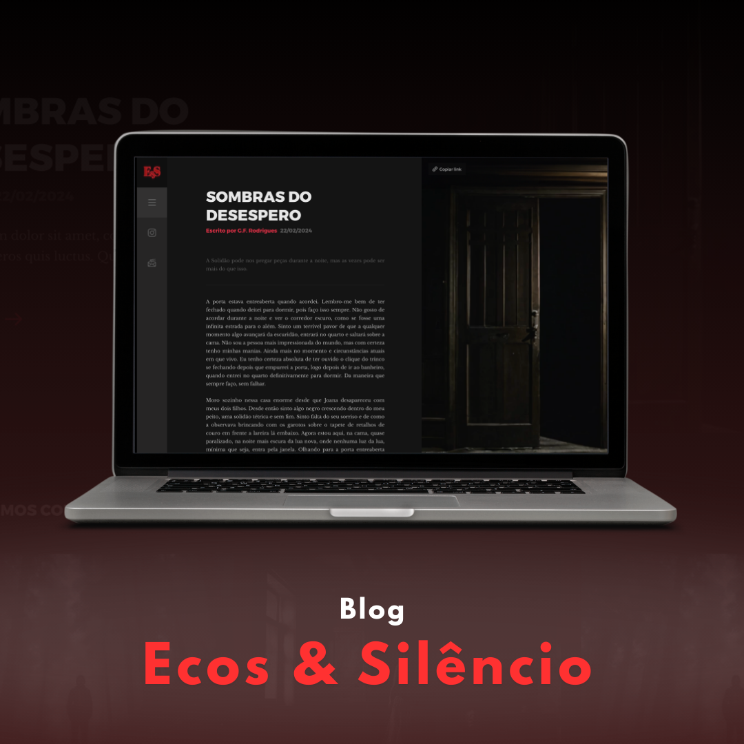Ecos & Silêncio é um blog dedicado a contos de terror, com um layout imersivo e visual impactante. Desenvolvido em WordPress usando Elementor, o projeto utiliza recursos no-code para criar uma experiência de leitura única, combinando tipografia, imagens marcantes e navegação fluida.